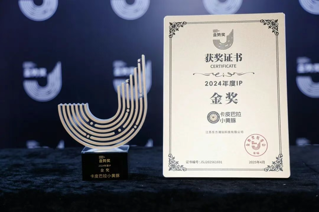 第五届金势奖颁奖典礼上,由东方潮玩科技提报的卡皮巴拉小黄豚IP凭借其憨态可掬的形象、精准的情绪价值传递,在一众品牌中脱颖而出,荣获2024“年度IP · 金奖”。