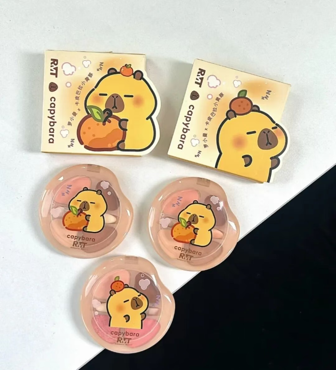 美妆赛道中,护理品牌Beautigo发布了限量版冰点脱毛仪(卡皮巴拉版),带着典雅的奶油蓝外壳,为女性用户提供萌感护肤体验。国风彩妆品牌罗小曼与小黄豚推出了联名彩妆盘,卡皮巴拉版的眼影腮红和唇冻的设计清新可爱,一经上市就收获好评 。充分印证了卡皮巴拉小黄豚在全品类商业合作中的强大变现能力。
