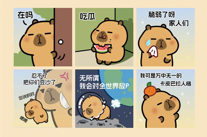 团队以抖音、小红书为阵地,每 2-3 天更新多格漫画与梗图,围绕职场解压、个人成长等主题输出治愈内容。当 “卡皮巴拉式松弛” 成为社交热词,这个 IP 早已超越卡通形象本身,成为当代青年 “反内耗” 的精神图腾。